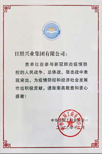 2020年12月,興業(yè)集團(tuán)榮獲“日照市抗擊新冠肺炎疫情先進(jìn)集團(tuán)”