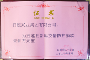 2021年1月,興業(yè)集團(tuán)榮獲“日照市經(jīng)濟(jì)發(fā)展突出貢獻(xiàn)獎(jiǎng)”